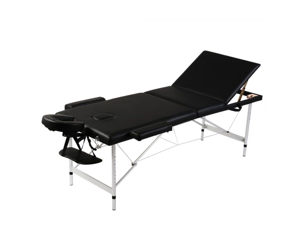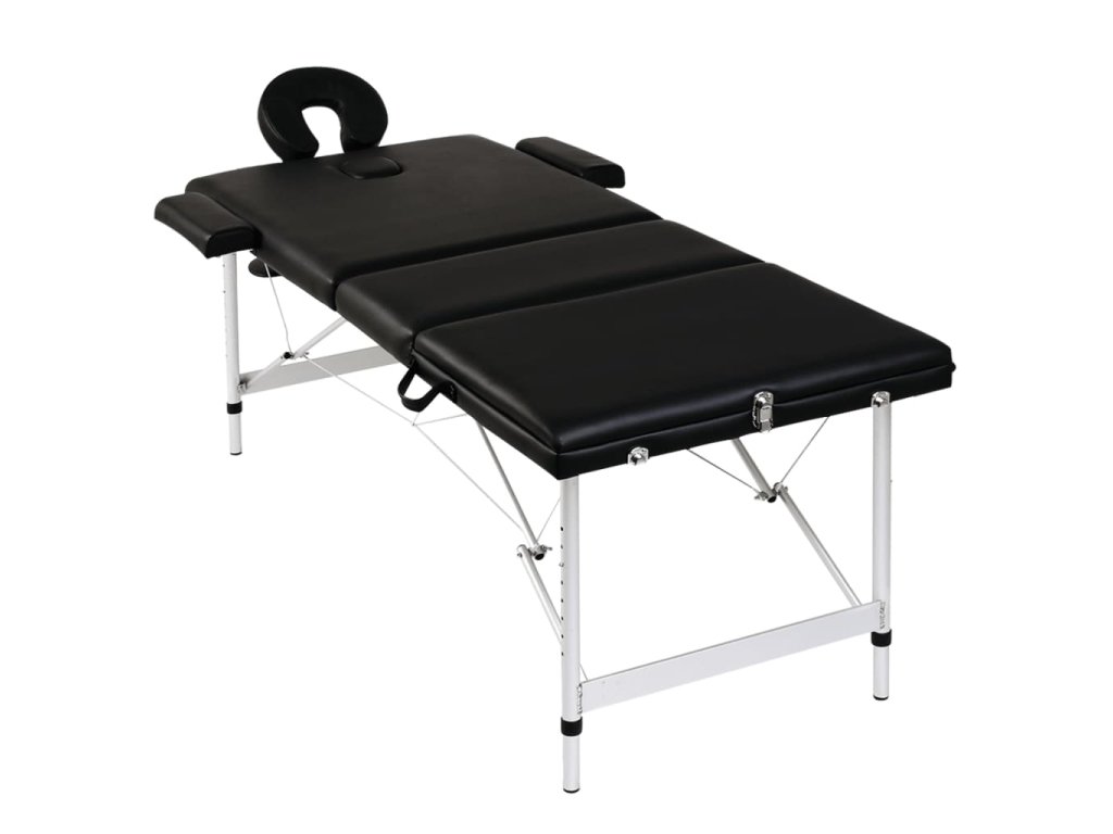 Čierny skladací masážny stôl s 3 zónami a hliníkovým rámom