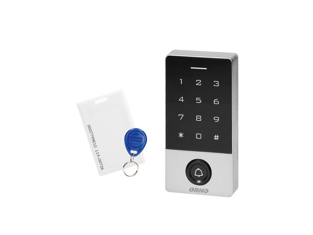 Samostatný kódový zámok kombinuje funkciu dotykovej klávesnice pre riadenie prístupu a čítačky kariet a bezdotykových kľúčeniek. Toto moderné zariadenie pracuje s elektromagnetickými zámkami so systémom kontroly vstupu. Môže tiež ovládať ďalšie elektrické alebo poplašné zariadenia. Zámok má 2 reléové výstupy, ktoré umožňujú napr. ovládanie prístupu k bránke a vjazdovej bráne z kódového zámku. Oprávnené osoby môžu vstúpiť do miestnosti alebo budovy po prečítaní karty alebo zadaní prístupového kódu. Pamäť EPROM uchováva uložené kódy a parametre v prípade výpadku napájania. Puzdro zámku je extrémne odolné a odolné voči meniacim sa poveternostným podmienkam. Je vhodný na povrchovú montáž. Rozsvietené LED diódy indikujú prevádzkový stav kódového zámku. Súprava obsahuje dve karty (OR-ZS-892) a dva bezdotykové ovládače (OR-ZS-890).