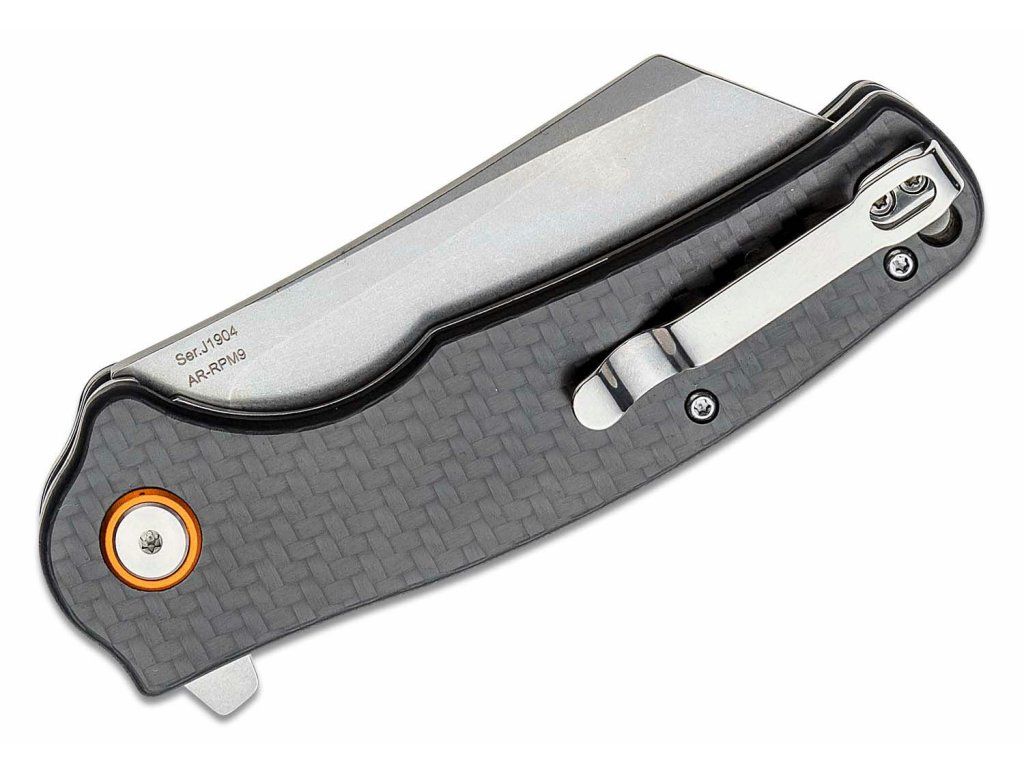 S čepeľou s hladkou hranou typu Cleaver z práškovej ocele AR-RPM9 s povrchom Stonewash, ktorá kombinuje mechanické vlastnosti ocele D2 a nehrdzavosť ocele Sandvik 14C28N. Otvára sa vyklápačom Flipper a zaisťuje ju Linerlock.