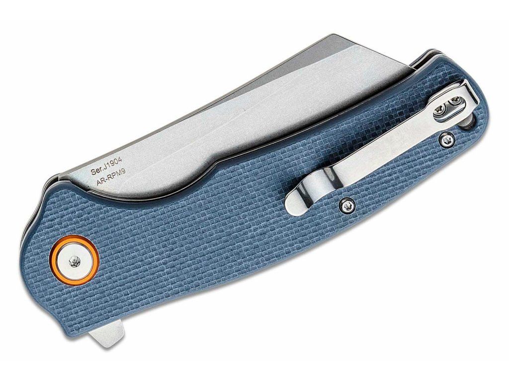S čepeľou s hladkou hranou typu Cleaver z práškovej ocele AR-RPM9 s povrchom Stonewash, ktorá kombinuje mechanické vlastnosti ocele D2 a nehrdzavosť ocele Sandvik 14C28N. Otvára sa vyklápačom Flipper a zaisťuje ju Linerlock.