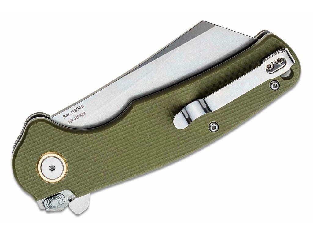 CJRB J1904R-GNF Crag vreckový nôž 8,4 cm, Stonewash, zelená, G10