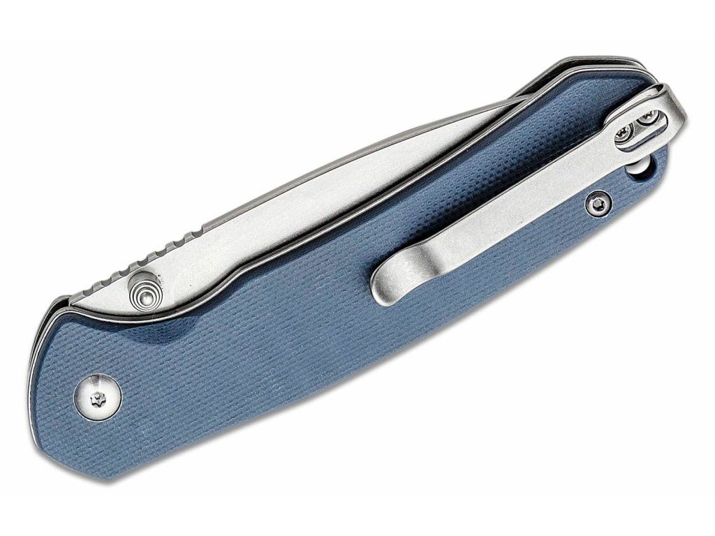 S čepeľou s hladkou hranou typu Drop Point z práškovej ocele AR-RPM9 s povrchom Stonewash, ktorá kombinuje mechanické vlastnosti ocele D2 a nehrdzavosť ocele Sandvik 14C28N. Otvára sa obojstranným palcovým kolíkom a zaisťuje ju Buttonlock.