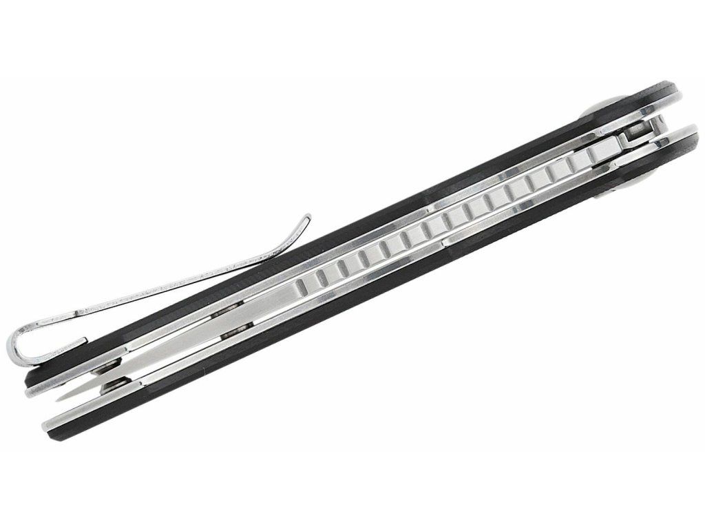 Rukoväť je z odolného G10 čiernej farby, s textúrou pre pohodlné uchopenie. So sponou na vrecká.