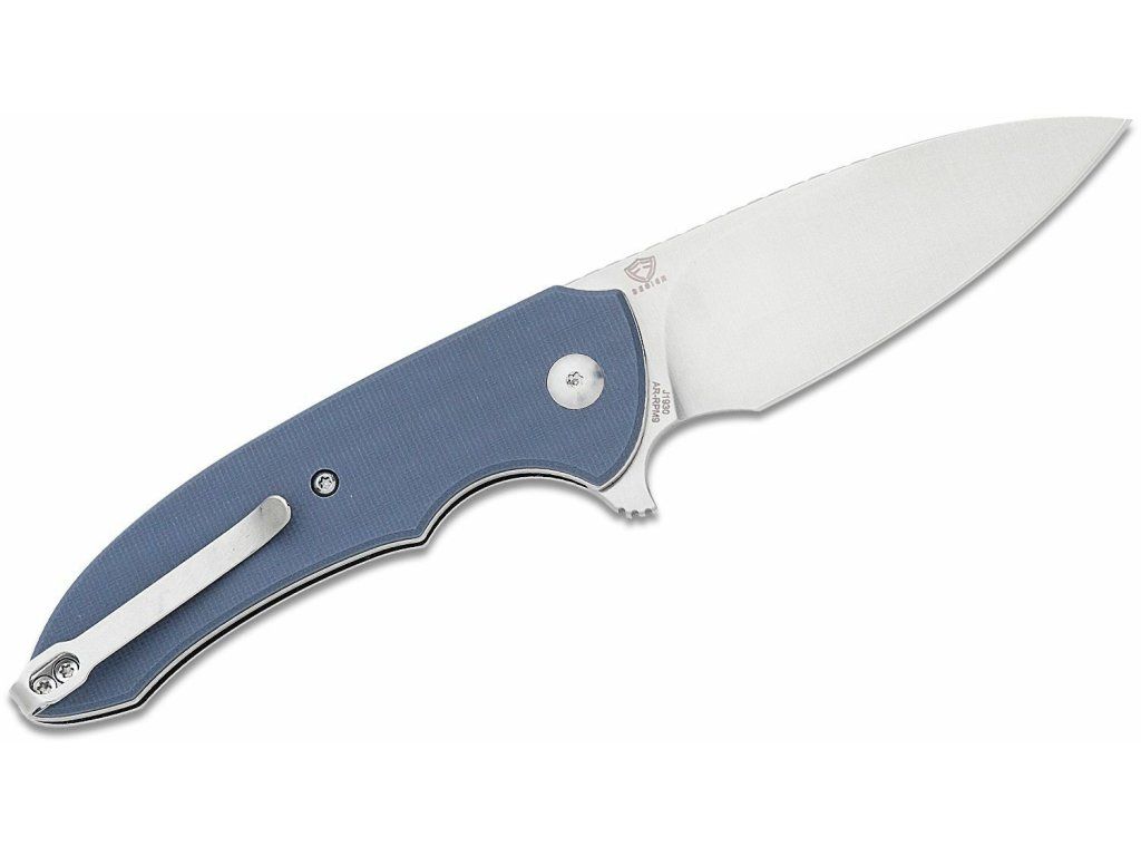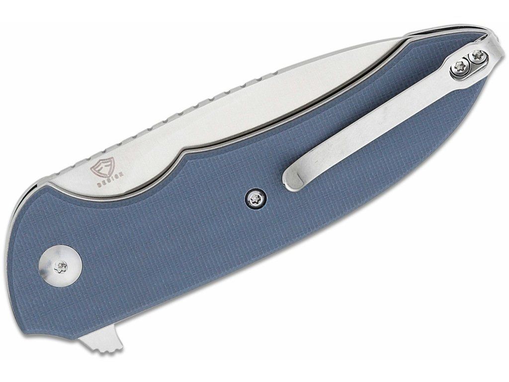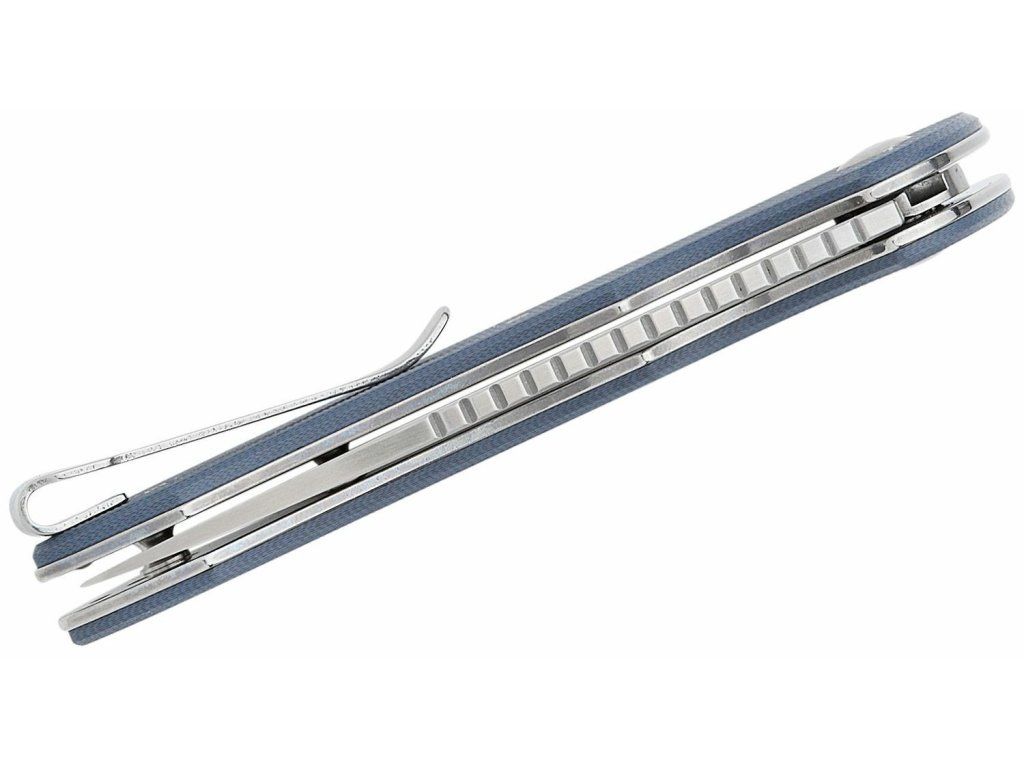 Rukoväť je z odolného G10 modrej farby, s textúrou pre pohodlné uchopenie. So sponou na vrecká.