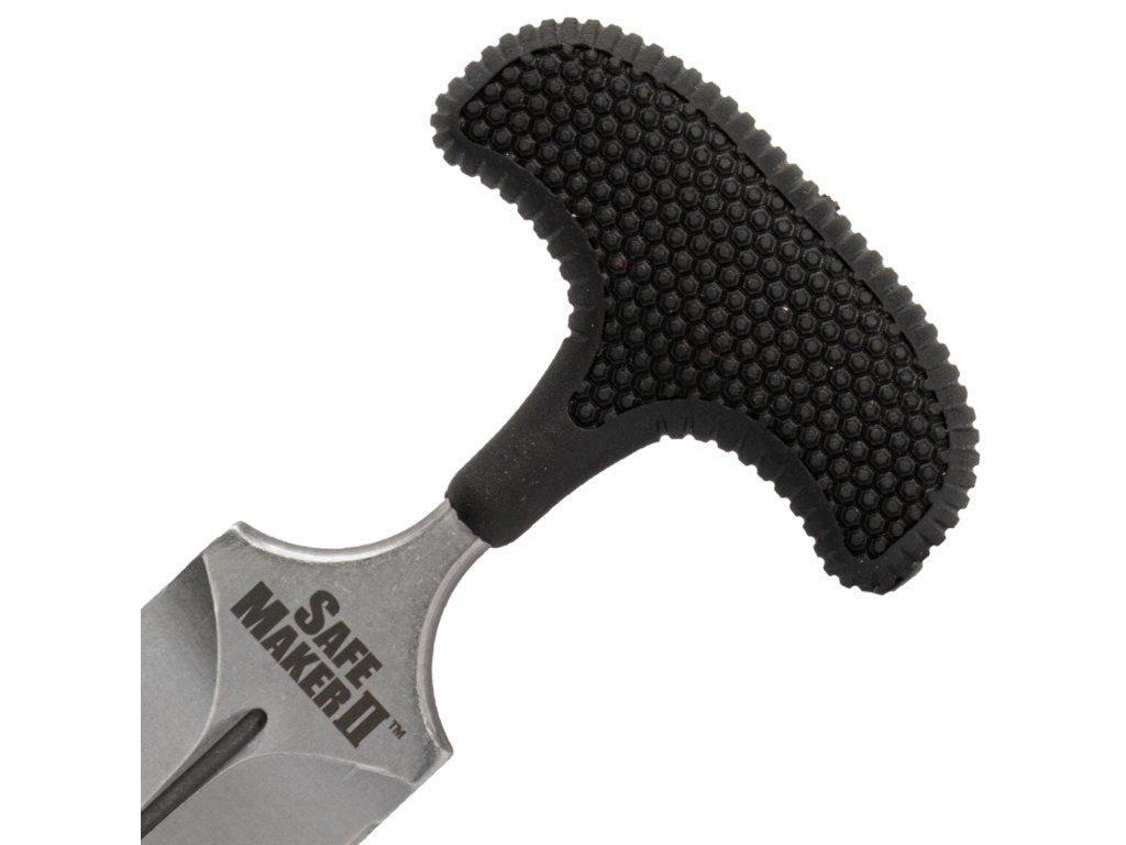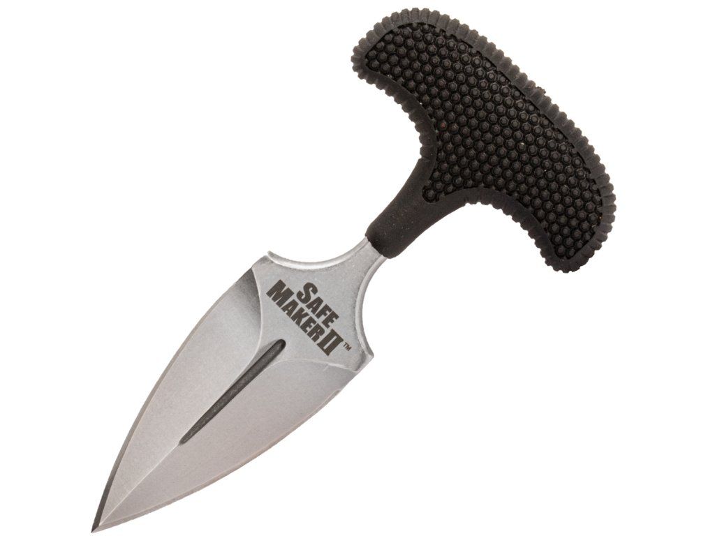 Tlačná dýka Cold Steel Safe Maker II je koncipovaná ako zbraň na sebaobranu, keď rukoväť je zovretá v dlani a čepeľ vyčnieva medzi prstami.