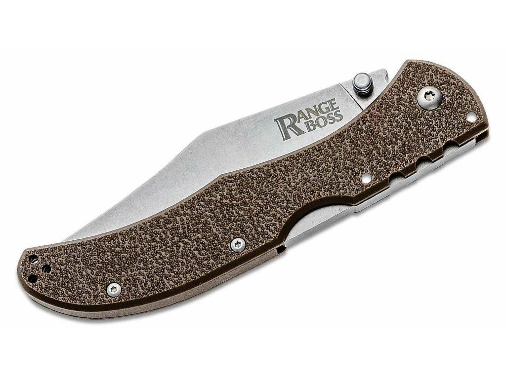 Vreckový zatvárací nôž Cold Steel Range Boss Dark Earth vhodný na každodenné (EDC) nosenie, je relatívne veľký, ale príjemný a ľahký ako pracovný nástroj.