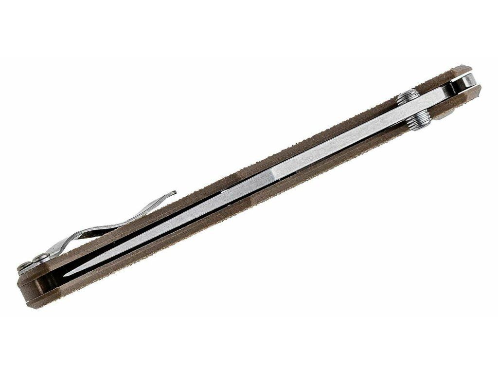 Má čepeľ s hladkou hranou z japonskej nerezovej ocele 4034 s povrchom Stonewash, otvára sa palcovým kolíkom a zaisťuje ju patentovaná poistka Tri-Ad Lock.