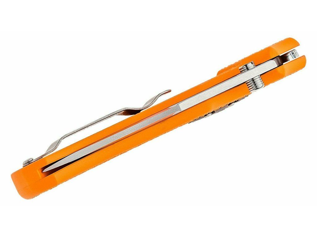 Rukoväť je z odolného GFN oranžovej farby, s textúrou pre pohodlné uchopenie. S dierkou na šnúrku a sponou na vrecká.