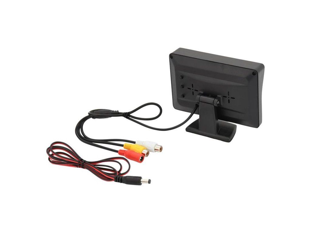 LCD displej so stojanom, ideálny pre parkovaciu kameru a na prehrávanie videí NTSC/PAL z akéhokoľvek prehrávača s výstupným káblom Cinch (RCA).