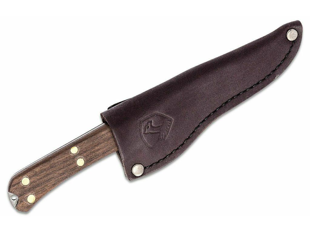 K nožu sa dodáva puzdro vyrobené z tmavej kože.