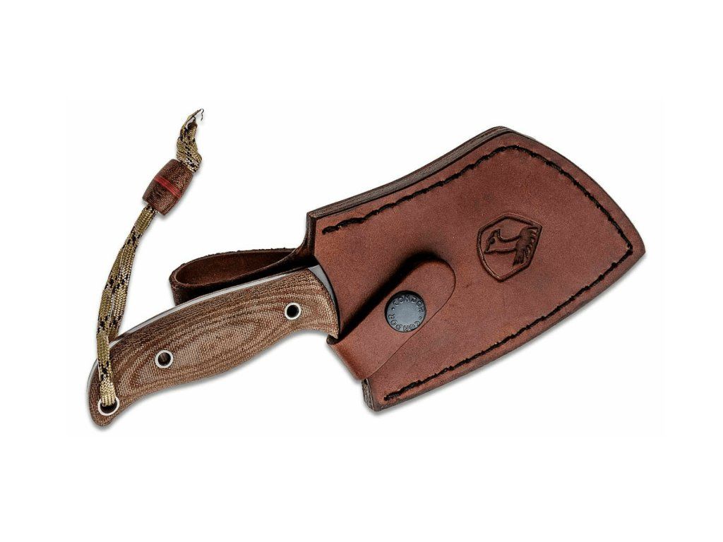 Rukoväť je vyrobená z odolného materiálu Micarta, na konci rukoväte sa nachádza otvor na prevlečenie šnúrky aj s príveskom.