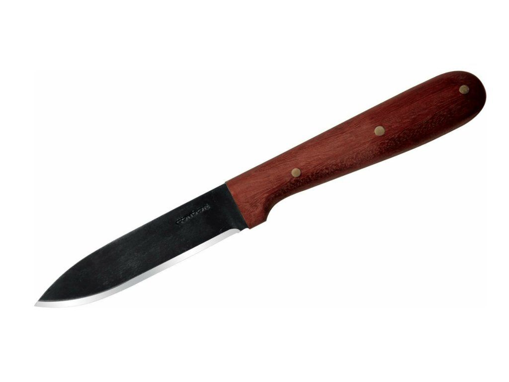 Rukoväť je vyrobená z tvrdého dreva, črienky sú k čepeli pripevnené trojicou mosadzných nitov.