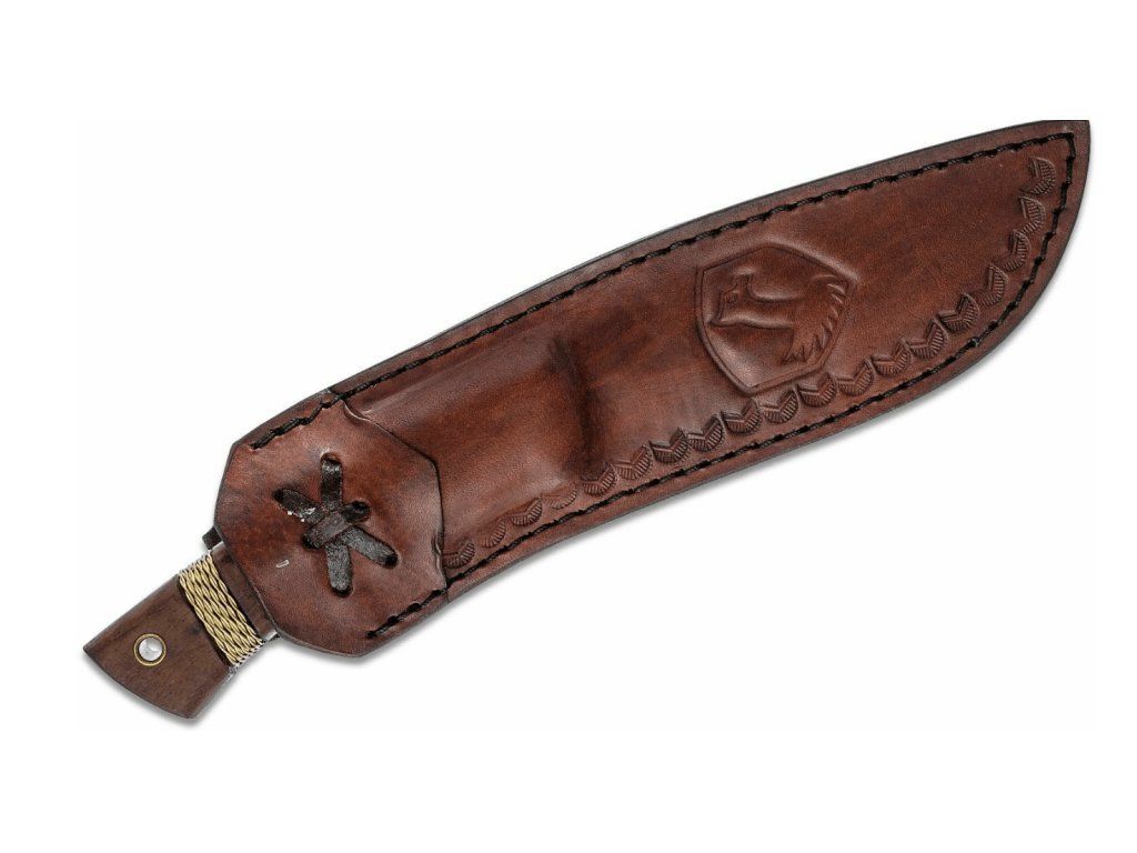 K nožu sa dodáva ručne spracované kožené puzdro.