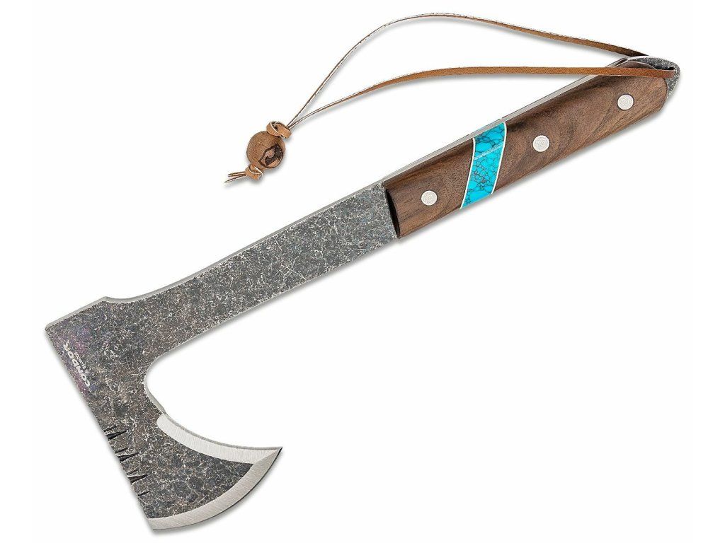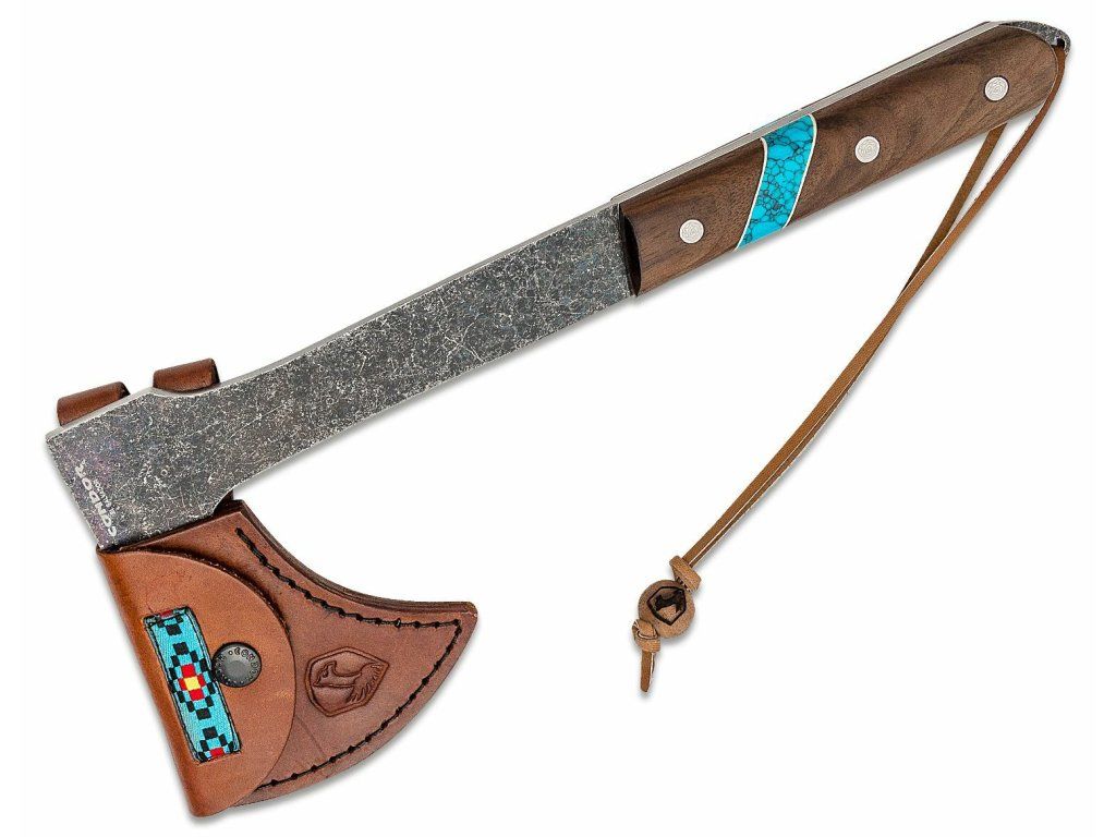 Condor CTK2826-HC BLUE RIVER TOMAHAWK sekera tomahawk 529g, orechové drevo, tyrkys, kožené puzdro
