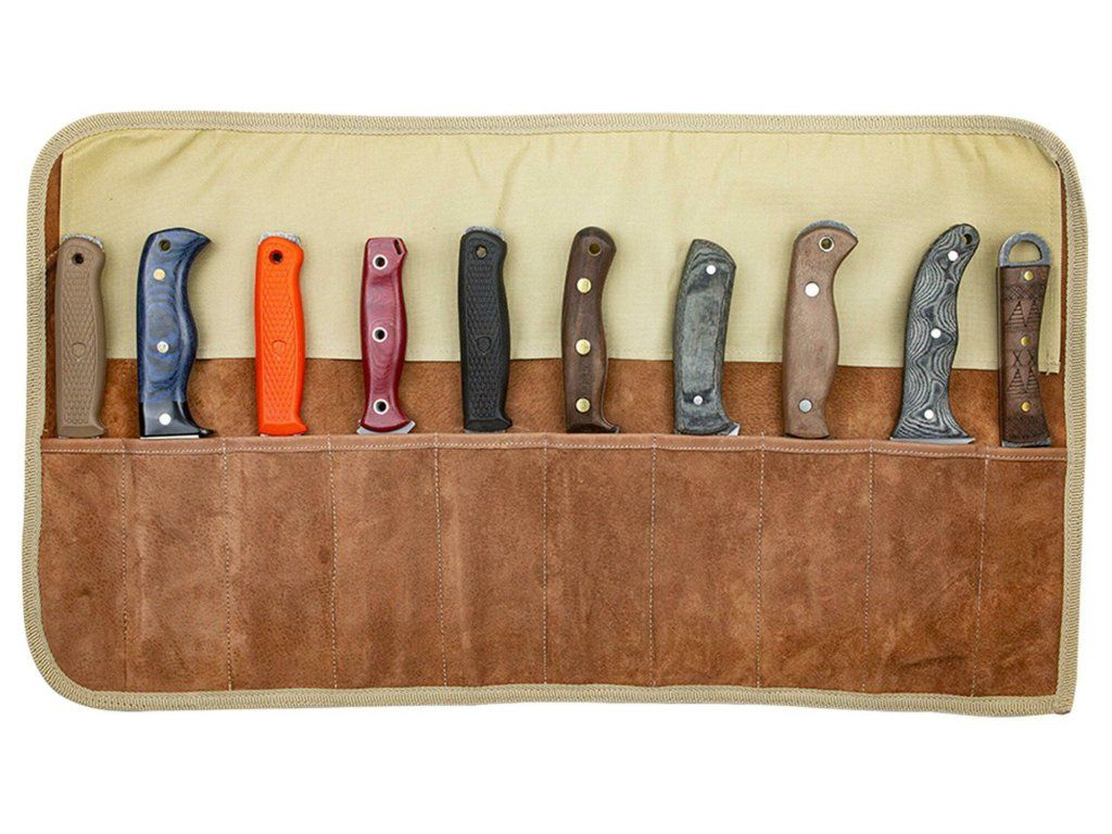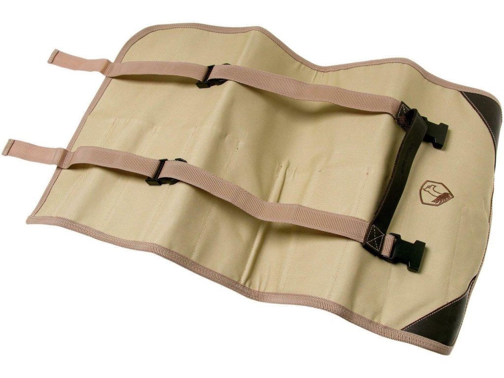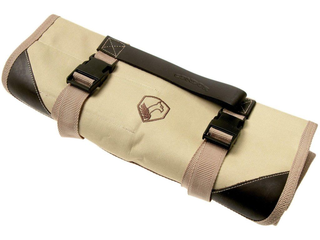 Condor Carry Knife Roll je riešením na skladovanie a prepravu 10 pevných nožov. Vonkajšia strana je vyrobená z pevného plátna. Vnútro má mäkkú koženú podšívku.