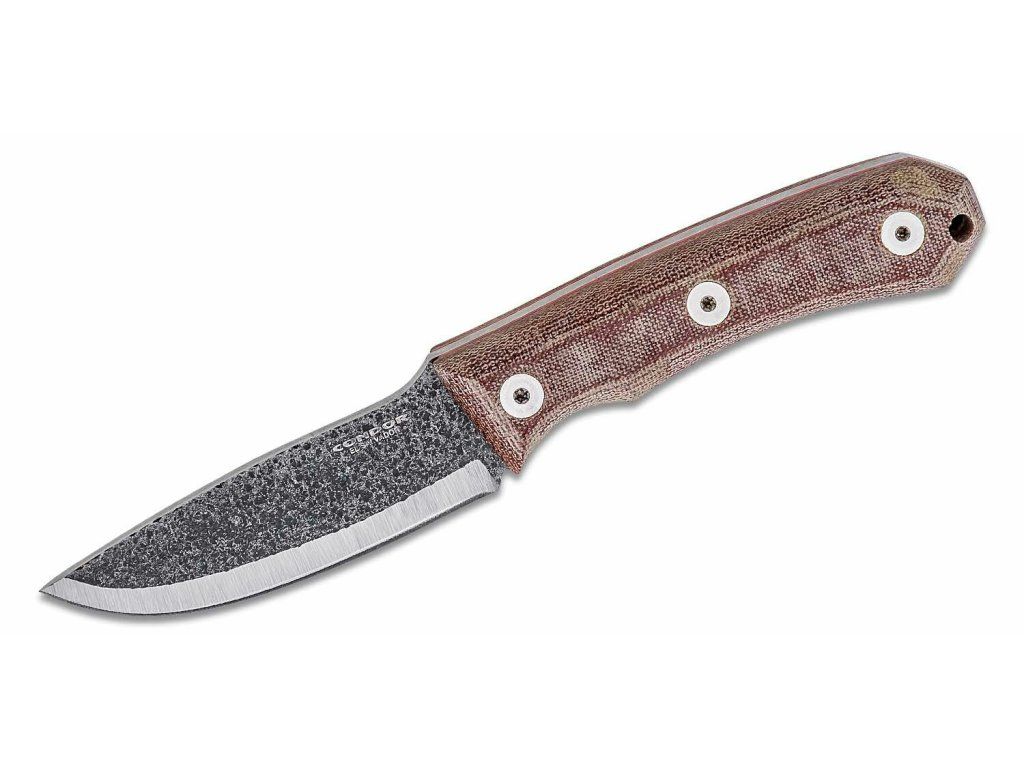 Rukoväť je z odolného materiálu Micarta hnedej Tan farby, s drsnou štruktúrou pre pohodlné uchopenie, v spodnej časti má otvor na šnúrku.