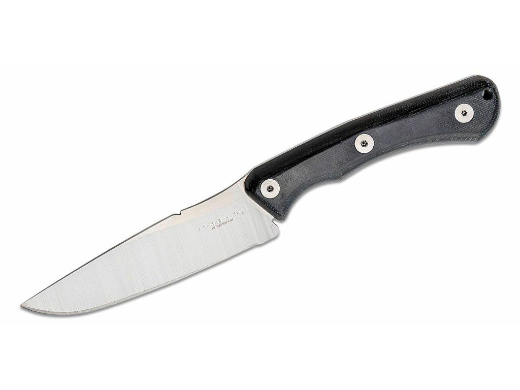 S pevnou čepeľou s hladkou hranou, z nerezovej ocele Sanvik 14C28N s leštenou povrchovou úpravou.