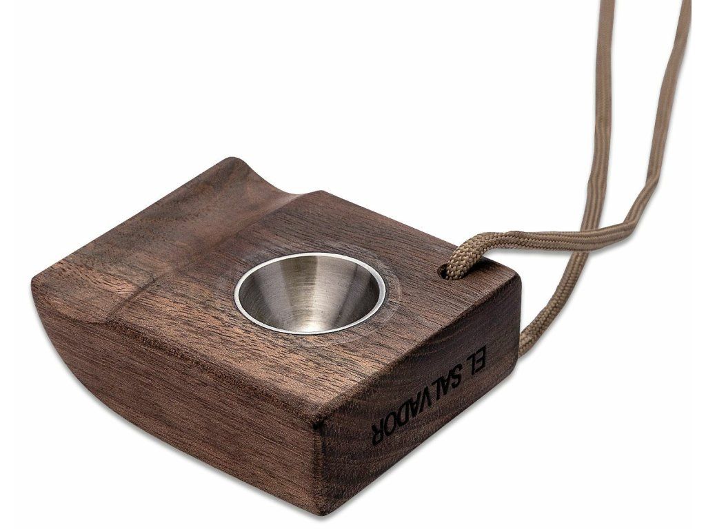 Je vyrobený z orechového dreva a ocele. Na kraji je otvor na šnúrku s paracordom.