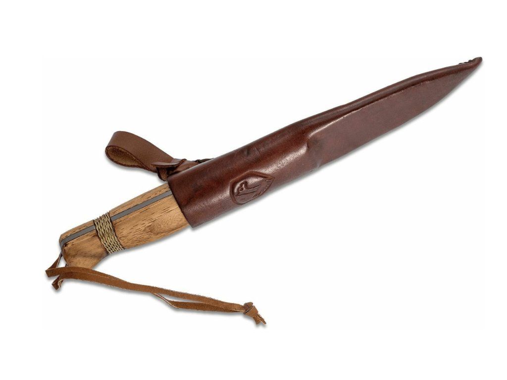 K nožu sa dodáva puzdro vyrobené z tmavej kože.