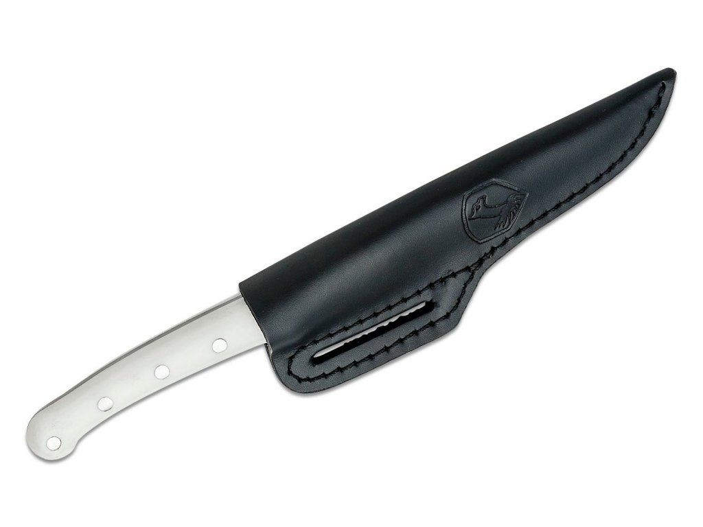 Rukoväť je z odolného materiálu Micarta bielej farby, prichytená k čepeli nitmi.