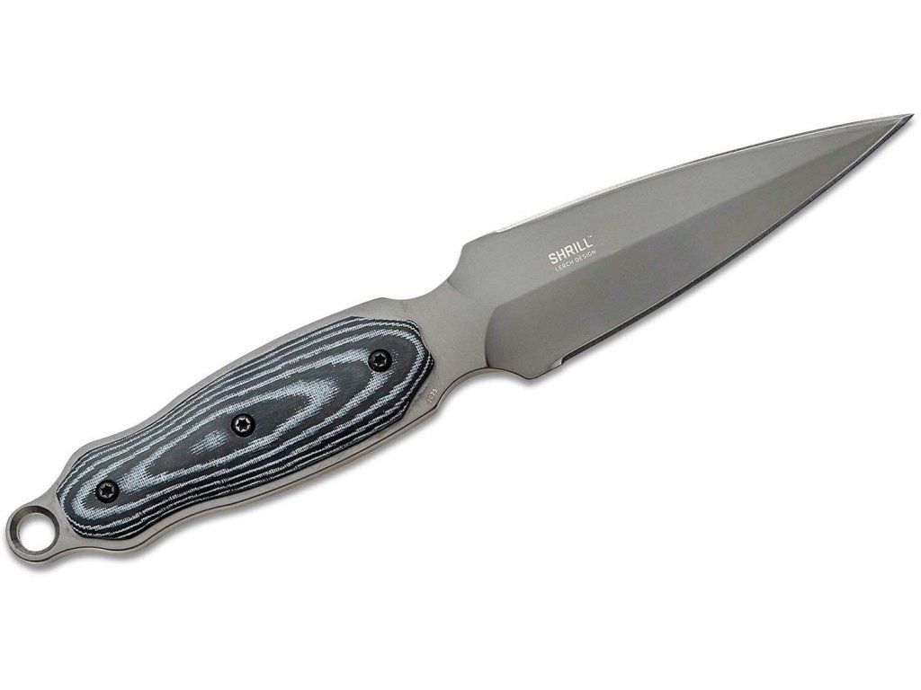 CRKT CR-2075 SHRILL™ BLACK GREY taktický nôž - dýka 12 cm, šedočierna, Micarta, kožené puzdro