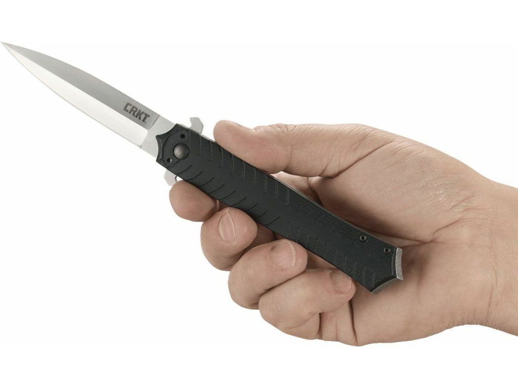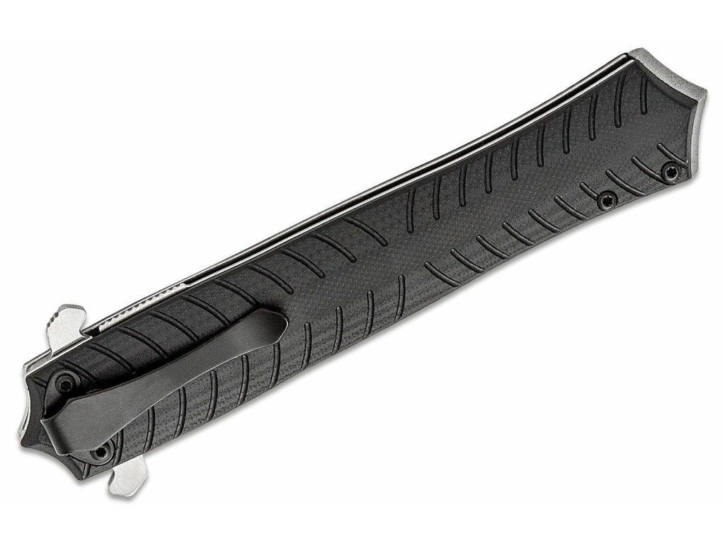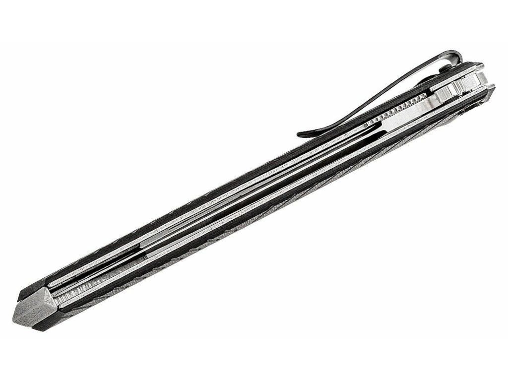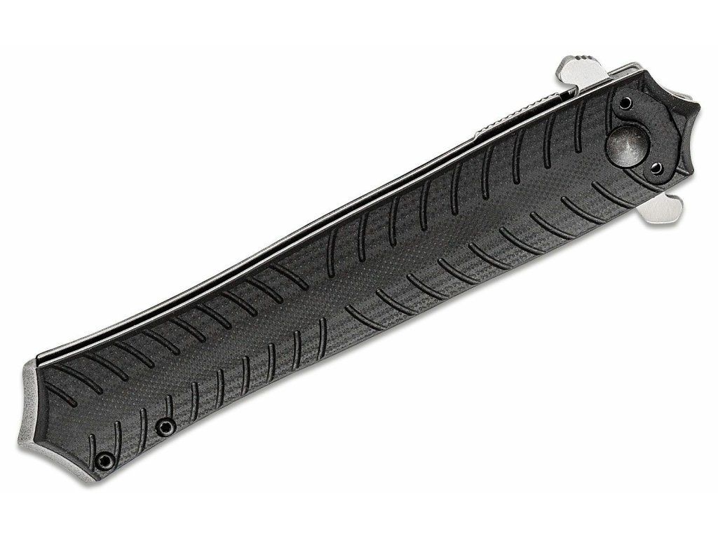 Rukoväť je z odolného G10 čiernej farby, s oceľovými vložkami. V spodnej časti má hrot, vďaka ktorému sa v zavretej forme dá použiť ako úderová zbraň. So sponou na vrecká.