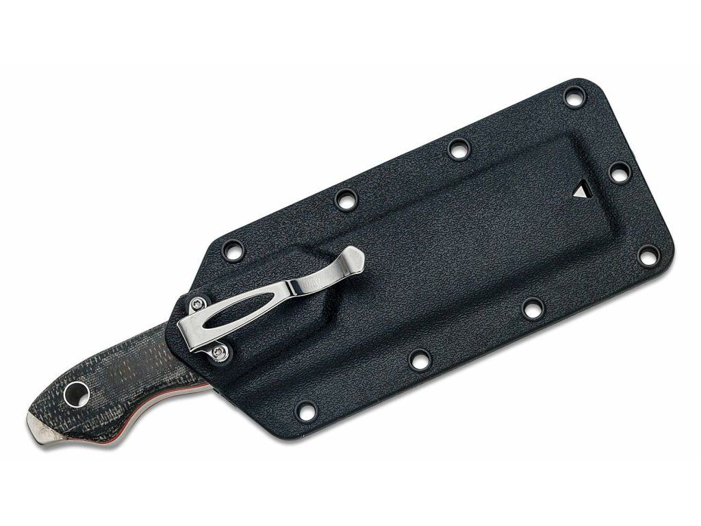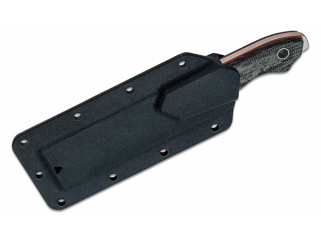 Tvarovaná rukoväť je z materiálu Micarta čiernej farby s červeným vláknom, s dierkou na šnúrku.
