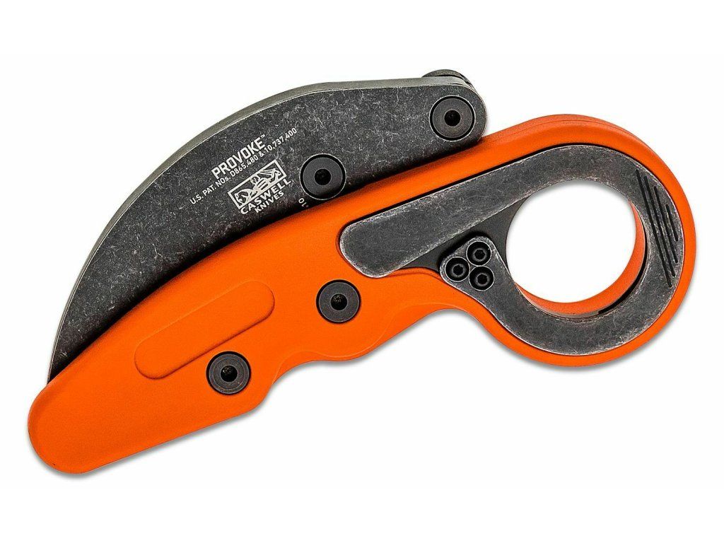 Zatvárací vreckový nôž - karambit CRKT Provoke Orange s futuristickým dizajnom, vhodný na každodenné (EDC) nosenie, sebaobranu a taktiku.