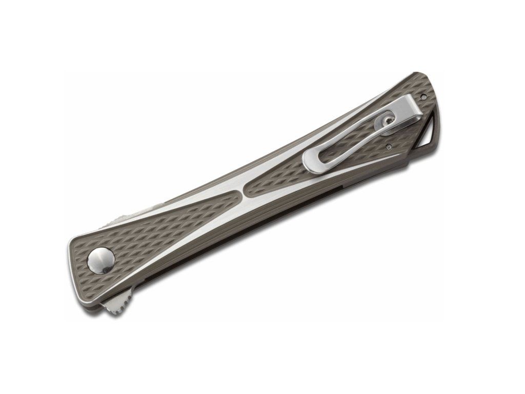 Má čepeľ s hladkou hranou z japonskej ocele AUS-8, uložená je na guľôčkových ložiskách a otvára sa vyklápačom Flipper a zaisťuje ju poistka Linerlock.