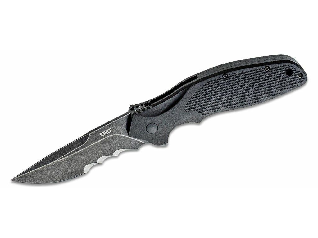 S čepeľou s čiastočne zúbkovanou hranou - zúbkovanie Veff z ocele 1.4116 s čiernym povrchom Black Stonewash, otvára sa pomocou vyklápača Flippera s asistenciou, zaisťuje ju Linerlock.