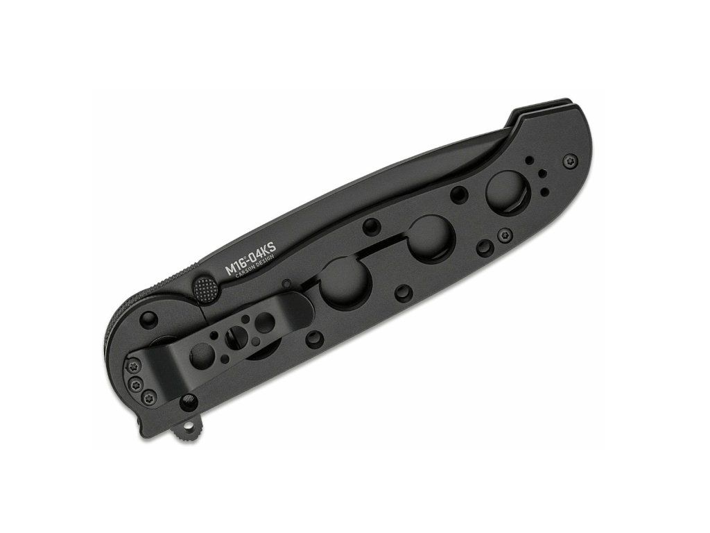 Rukoväť je vyrobená z nehrdzavejúcej ocele s čiernou povrchovou úpravou, s otvormi na odľahčenie noža, so sponou na vrecká.