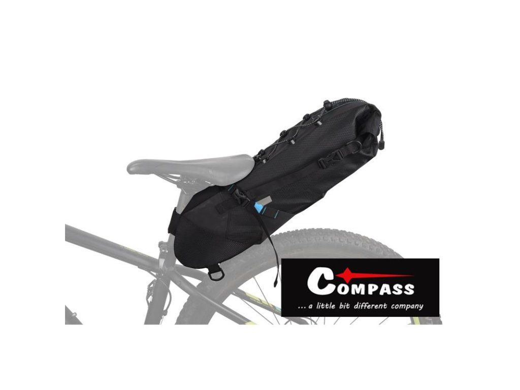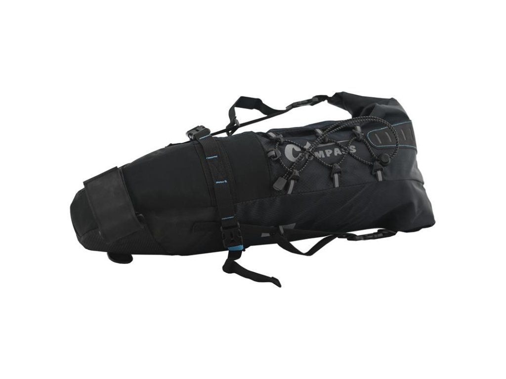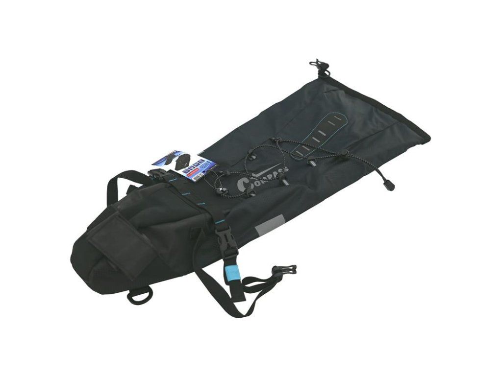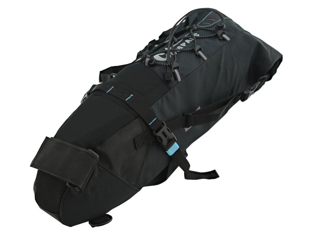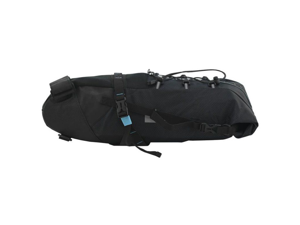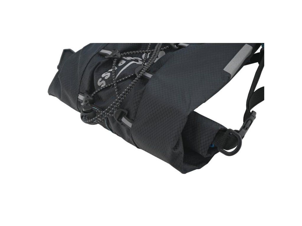 Tato taška poskytuje až 10 litrů prostoru pro vaše věci. Je upevněna pod sedlem širokým popruhem, který obepíná sedlovou trubku. Pro zajištění stabilního držení slouží dva nastavitelné popruhy, které se připevňují ze spodní strany přímo na sedlo.