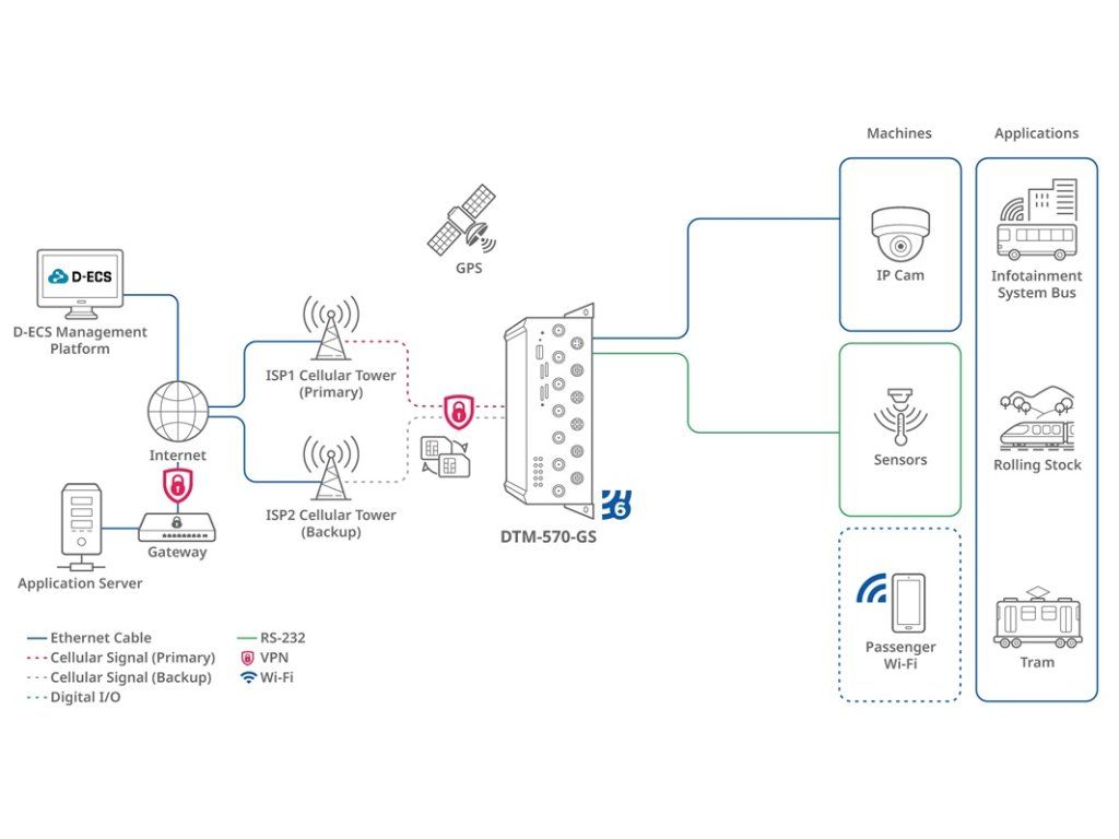 D-Link DTM-570-GS 5G Transit Gateway Transitní brána DTM-570-GS 5G poskytuje robustní mobilní připojení 5G NR a LTE pro bezdrátový uplink a downlink a je vybavena čtyřmi gigabitovými ethernetovými porty s kódováním M12/X pro připojení lokálních zařízení. Toto řešení hladce integruje poskytovatele služeb, cestující, vozidla, Wi-Fi6 AX1800, certifikaci pro železniční dopravu, široký rozsah vstupního napětí a pozemní systémy do jednotné sítě, bezproblémově propojuje IP kamery, senzory RS232 a další místní zařízení, takže je ideální pro náročné aplikace IoT v tranzitním prostředí. Díky vysokorychlostnímu bezdrátovému připojení Wi-Fi6 AX1800 s vysokou kapacitou usnadňuje výměnu cestovních dat v reálném čase. Prostřednictvím integrace pokročilých síťových technologií pomáhá DTM-570-GS vytvářet chytřejší, pohodlnější a efektivnější dopravní služby. Je založen na principech osobní mobility a svobody, zlepšuje tok cestujících a účinně snižuje dopravní zácpy. * vylepšená palubní telematika a infotainment - DTM-570-GS posiluje železniční dopravu díky pokročilé konektivitě, která propojuje palubní zařízení RS-232 a Ethernet s internetem prostřednictvím robustní sítě 5G. Toto nastavení nejen usnadňuje monitorování bezpečnosti cestujících v reálném čase prostřednictvím kamerových systémů, ale také zajišťuje plynulý provoz palubních systémů železnice. Navíc poskytuje přesné informace o příjezdu do stanice na digitálních displejích, čímž zlepšuje zážitek cestujících. * optimalizace provozu železnic pomocí lokalizačních služeb - DTM-570-GS zlepšuje provoz železnic díky přesnému určování polohy pomocí GPS, což umožňuje efektivní využití aktiv v reálném čase. Brána podporuje provozovatele tím, že poskytuje podrobné informace o poloze vlaku a ujetých kilometrech, což usnadňuje optimalizaci tras a zajišťuje přesnost a vyšší efektivitu díky včasným službám. * robustní konstrukce pro železniční aplikace - DTM-570-GS je navržen tak, aby odolával náročným podmínkám v kolejových vozidlech a splňoval povinné požadavky norem EN45545, EN50155 a EN50121-3-2 týkajících se železnic. Jeho robustní konstrukce zahrnuje průmyslové konektory M12, pouzdro z pozinkované oceli odolné proti korozi a široký rozsah vstupního napětí. To zajišťuje spolehlivé a stabilní připojení M2M i za extrémních podmínek pohybu, teploty a vlhkosti, což jej činí ideálním pro náročné železniční aplikace, kde je spolehlivý výkon rozhodující. Management: webové rozhraní, SMS, D-ECS (cloudová platforma pro vzdálenou správu zařízení) Rozhraní zařízení: * mobilní modul: 5G/4G 3GPP Rel. 16 * mobilní standardy: 5G NR (sub-6 GHz), 4G LTE (DL Cat 19/UL Cat 18) - duální režim 4G/5G pro přizpůsobení se různým sítím operátorů * Ethernet: 1x GE (M12, X-coded) WAN/LAN port, 3 x GE LAN porty (M12) - (rychlost ethernetu: porty 10/100/1000 Mb/s) * SIM slot: 2x dual SIM (Mini SIM) s auto failoverem (pro redundanci při selhání mobilní sítě WAN) * Wi-Fi: WiFi6 AX1800 (2,4G/5GHz) pro připojení více zařízení * GNSS: profesionální GPS/GLONASS systém GNSS * Sériový port: 1x sériový port RS-232 (M12, A-coded) * Log úložiště: 1x USB * vstupní příkon: DC 18-75 V (M12 A-Code) nebo přes PoE (Eth4) (X-Code) - počet PoE portů: 1 (PoE In) * anténní konektory: 4x TNC mobilní, 2x TNC Wi-Fi, 1 x TNC GPS Výkon: * maximální propustnost dat v mobilní síti: - 5G NSA: 3,4 Gb/s (DL) / 550 Mb/s (UL) - 5G SA: 2,4 Gb/s (DL) / 900 Mb/s (UL) - LTE: 1,6 Gb/s (DL) / 200 Mb/s (UL) * maximalní přenosová rychlost Wi-Fi: 2,4GHz: až 574 Mb/s, 5 GHz: až 1201 Mb/s - rychlost přenosu dat závisí na kapacitě sítě a síle signálu WAN: * WAN rozhraní: mobilní, Ether-WAN, Wi-Fi * Multi-WAN funkce: failover (přepnutí při selhání) * Cellular: NAT, bridge * Ether-WAN: dynamic IP, static IP, PPPoE * monitorování připojení: Ping/DNS query reboot Sítě: * LAN & VLAN: DHCP server/relay, port/tag-based VLAN * Port Forward: NAT Loopback, Special AP&ALG, DMZ, Virtual Server & Computer, VPN Pass-through * Routing: Static, dynamic RIPv1/v2, OSPF, BGP * DDNS: DynDNS, No-IP, dynamic DO * QoS: Traffic priority queuing by source/destination, service * IGMP Proxy, IPv4/v6 Wi-Fi(6) AX1800: * pro vzdálený přístup k datům v reálném čase a připojení více telemetrických zařízení a senzorů * standard: IEEE 802.11 ax/ac/n/g/b/a/h * režimy: AP Router * funkce: Multi SSID, WIDS, AP router mode, station * zabezpečení: WPA2-PSK, WPA2, WPA-PSK/WPA2-PSK, WPA3-SAE, WPA2-PSK/ WPA3-SAE, WPA3, 802.1x * šifrování: WEP, AES, TKIP/AES Služby: * Cellular Toolkit: Data usage, SMS, SIM PIN, network scan * Event Management: SMS, e-mail VPN: * VPN Tunnel: IPSec, OpenVPN, PPTP, L2TP, GRE, WireGuard * VPN Pass Through: IPSec, PPTP, L2TP Zabezpečení: * Firewall: SPI firewall, IPS, port forward, ALG * Access Control: MAC/IP filter, URL blocking Správa: * Management: SNMPv1/2/3, D-Link D-ECS (licence zpoplatněna) * Maintenance: Web UI, diagnostic tools via ping/tracert * System: FW upgrade, backup and restore config, reboot and reset * Logging: System log, external syslog server Monitoring: * Device Status: CPU/memory usage, connection sessions, WAN status, client list * Cellular Status: IMSI, ICCID, operator, connection state, connected band, RSSI, SINR, RSRP, RSRQ, LAC, TAC, cell ID, MCC, and MNC * Security: VPN status, firewall status * Statistics and Reports: Cellular signal, cellular usage Možnosti použití: * Wi-Fi hotspot pro cestující, systém infotainmentu (autobus, kolejová vozidla/vysokorychlostní vlaky, tramvaje), palubní síť pro zařízení RS-232 a Wi-Fi, GPS lokalizace pro správu vozového parku Barva: černá (průmyslový design) Materiál zařízení: odolné 
