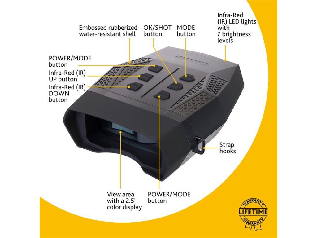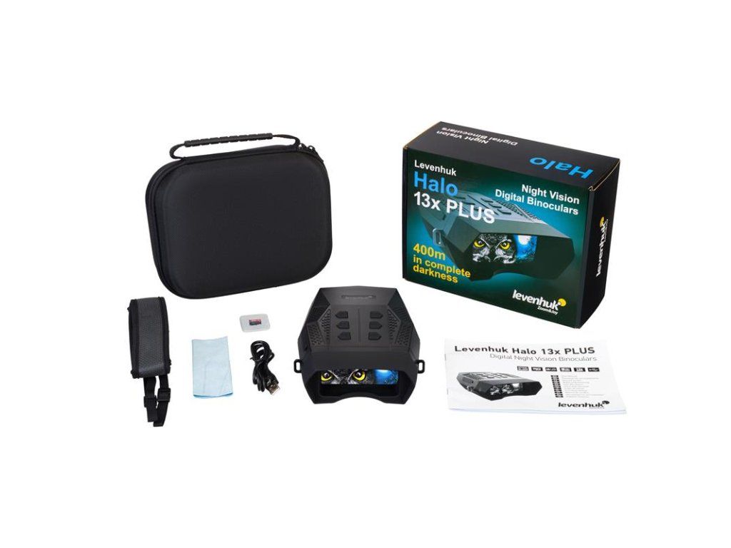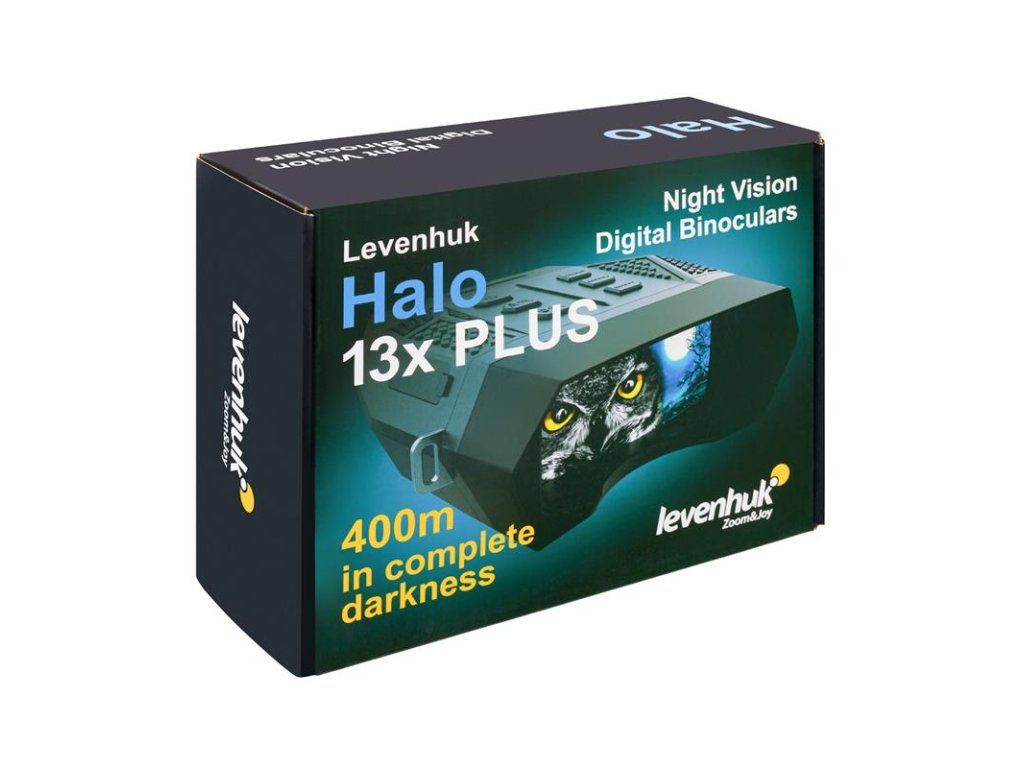 Binokulár Levenhuk Halo 13x Plus je vybavený skleněnou optikou se neuvěřitelnou světelností f/1, která klade minimální odpor procházejícímu světlu, což oceníte především během pozorování a snímání v černočerné tmě. Antireflexním povrch z oxidu křemičitého pak garantuje ostřejší a jasnější obraz za jakýchkoliv světelných podmínek, kdy ve dne můžete studovat objekty umístěné od 3 m dále a v noci lze sledovat objekty až do 400 m. Infračervené osvětlení poté nabízí hned 4 provozní režimy a 7 různých úrovních jasu, kdy minimální hodnoty rapidně prodlužují životnost baterií a maximální hodnota zase umožňuje pozorovat extrémně přesvětlené scény zcela bez omezení.