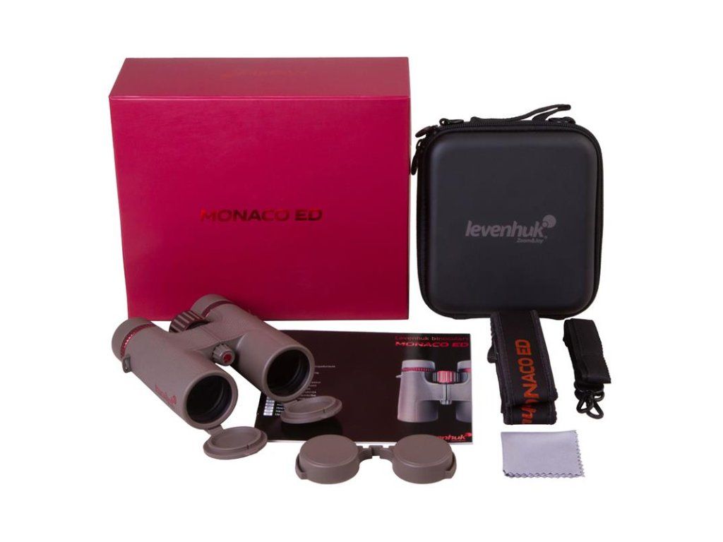 Okuláry používají pět samostatných čoček, které výrazně vylepšují ostrost obrazu. Dalekohledy Levenhuk Monaco ED 10x42 umožňují 10x zvětšení a přinášejí perfektní obraz za slunného dne i za podmínek s nízkým osvětlením.