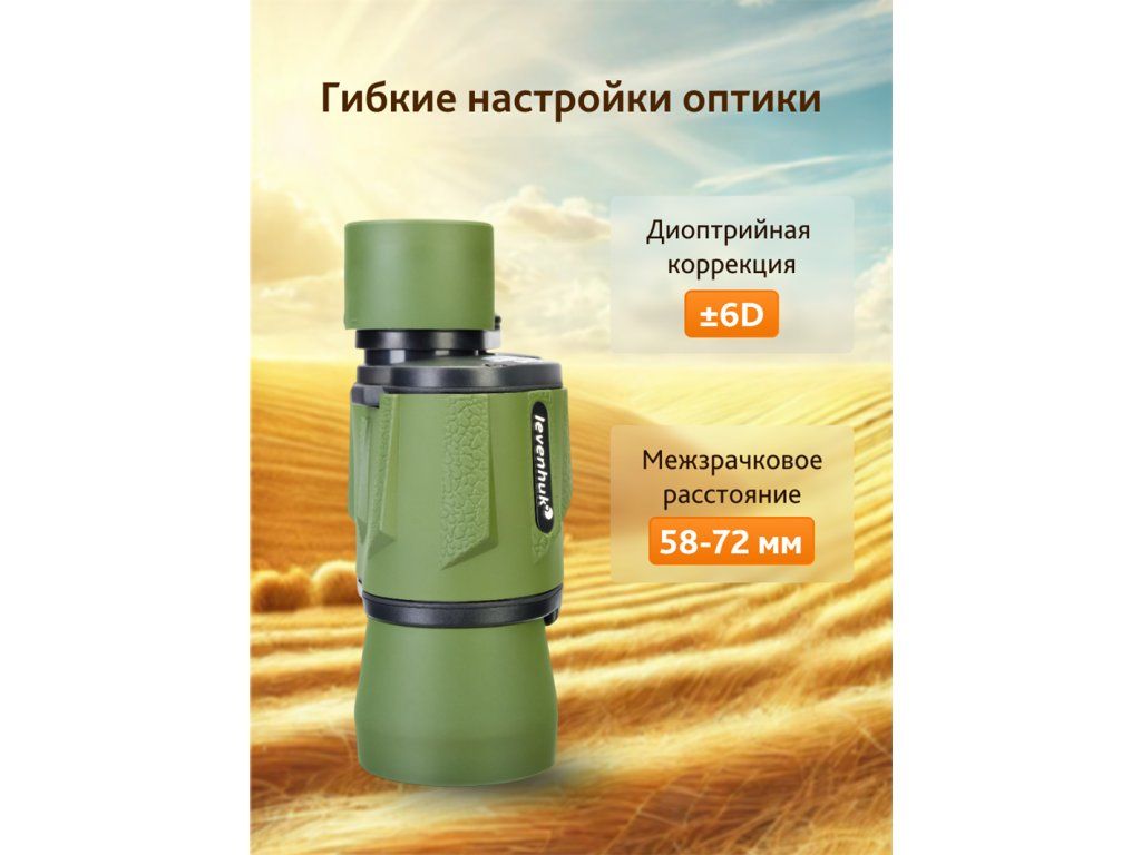 Obraz vytvořený optikou Levenhuk Travel 10x40 je jasný, vysoce kontrastní a čistý. Kvalitu vytvářených obrazů zajišťuje plně potažená optika ze skla BK-7. Optické schéma je založeno na Porro hranolech. Čočky se zaostřují současně otáčením centrálního zaostřovacího kolečka. Uživatelé s nedokonalým zrakem ocení sklopné očnice pro pozorování v brýlích i široký rozsah nastavení dioptrické korekce.