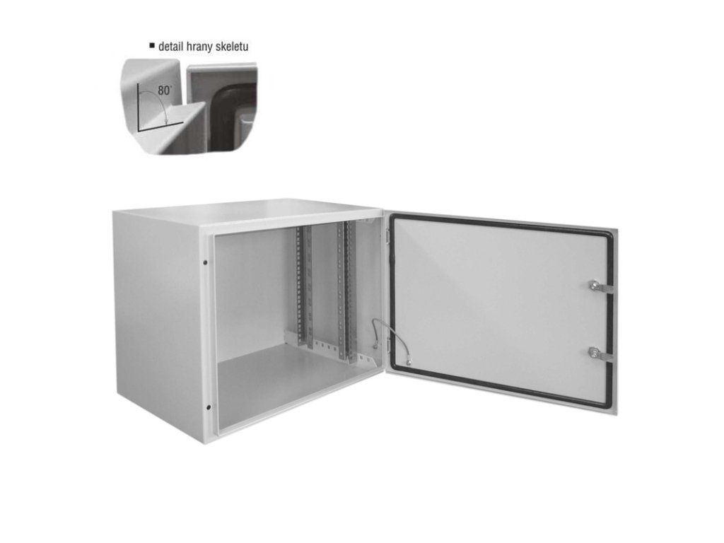 19''venkovní (outdoor) rozvaděč 09U/600x400 IP65 ROZMĚRY • Výška 467mm • Šířka 600mm • Hloubka 400mm PŘEHLED Univerzální svařovaný nástěnný rozvaděč pro prvky strukturovaných kabeláží menšího rozsahu, nebo pro instalaci prvků telekomunikačních rozvodů se širokým spektrem použití. Její rozměrová variabilnost, univerzálnost a vysoké krytí umožňuje použití jak v průmyslu, tak i v institucích jako jsou školy, banky, úřady atd. Tento rozvaděč se dodává s krytím IP-65. Na dveřích je lité těsnění, které zajišťuje vysoký standard těsnosti. Rozvaděč tvoří svařovaná, samonosná konstrukce z plechu síly 1,3mm (zesílená na lemu kolem dveří zpětným ohraněním, tímto vznikne relativní síla plechu 2,6mm) uzpůsobená pro uchycení na stěnu. Skelet je kolem dveřního lemu ohranění tak, aby tvořil odtokový žlábek. Uchycení je možné provést přes čtveřici otvorů na zadní straně skříně. Zavěšení dveří je provedeno na dvou, případně třech dveřních závěsech, a to podle výšky rozvaděčové skříně. Zajištění dveří proti otevření je provedeno pomocí jednobodových cylindrických zámků. Standardně jsou skříně dodávány s povrchovou úpravou pro venkovní prostředí. Jsou opatřeny termoreaktivní přáškovou barvou z čistého polyesteru se zvýšenou odolností proti slunečnímu záření a vnějším povětrnostním podmínkám. Základní odstín je RAL 7035. Doporučení: - při montáži ve volném nekrytém exteriéru je vhodné zakoupit a instalovat Stříšku pro OUTDOOR rozvaděč 19'' - chrání horní lem rozvaděčové skříně před deštěm a sněhem.Dodatočné parametre