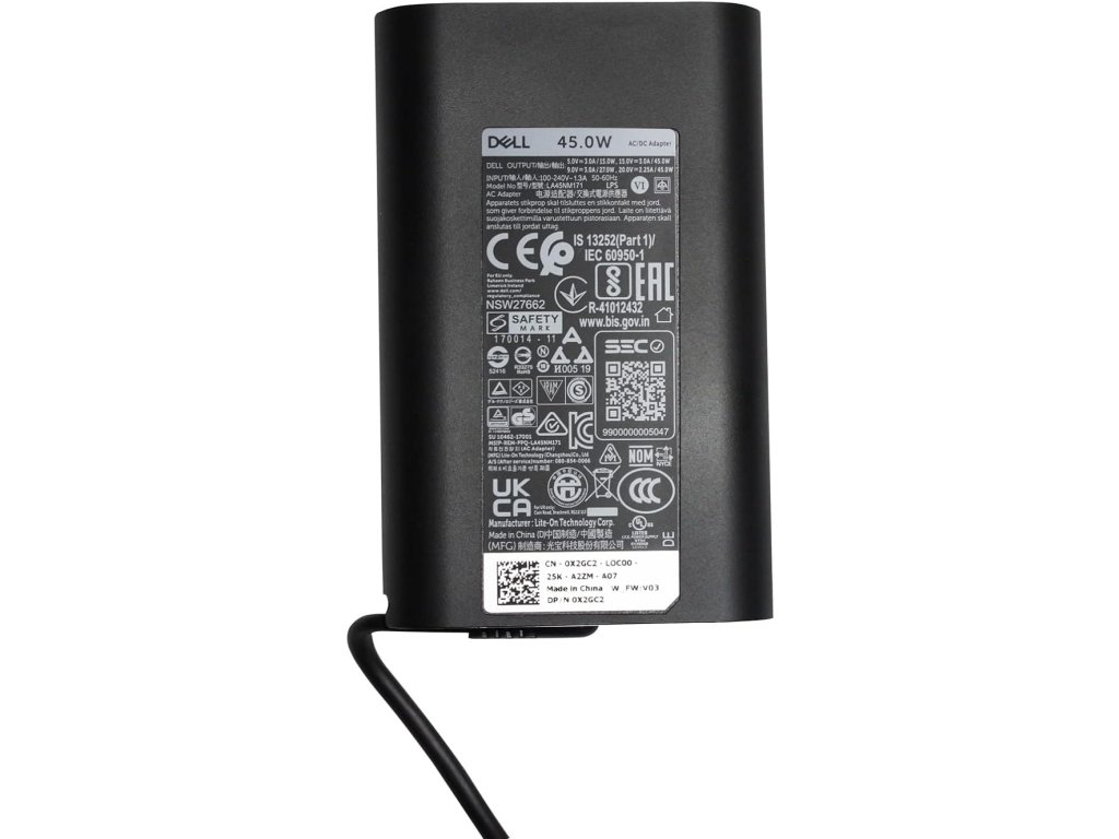 Napájecí adaptér už nemusíte přenášet mezi domovem a kanceláří. Pořiďte si k notebooku druhý adaptér, jeden nechávejte v kanceláři a s druhým pracujte doma nebo na cestách. Tento 45W napájecí adaptér značky Dell™ je konstruován tak, aby vyhovoval potřebám vašeho notebooku Dell™ . S Male USB-C konektor, umožňuje práci s počítačem a současné nabíjení baterie z elektrické sítě. Vlastnosti * Nabízí 45 Watt k dostatečnému napájení a nabíjení vašeho notebooku * 1m napájecí kabel je součástí balení * Obsahuje gumový popruh pro snadnou správu kabelů a LED světlo na DC konektoru Kompatibilita Latitude 7200 2IN1 Latitude 3390 2IN1 Latitude 5290 2IN1 Latitude 7212 Latitude 7220 FALCON TABLET RUGGED Latitude 7220EX FALCON ATEX TABLET RUGGED Latitude 7285 2IN1 Latitude 7370 (CELTIC 13) Latitude 7390 2IN1 Latitude 7400 2IN1 VOSTRO 5590 XPS 12 9250 (VENENO) XPS 13 (7390) ITALIA CML XPS 13 (9310) XPS 13 (9365) AVENTADOR XPS 13 (9370) XPS 13 (9380) XPS 13 9305Dodatočné parametre