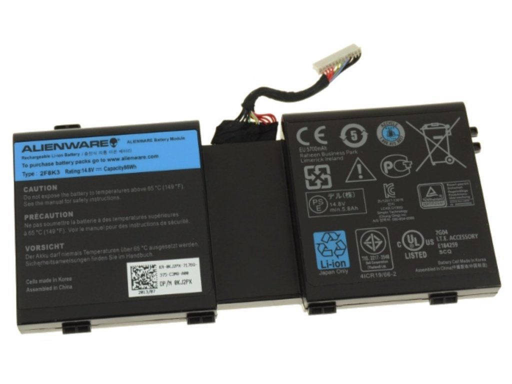 Vlastnosti - Kapacita 86 Wh - Spolehlivé napájení pro potřebný výkon Alternativní PN KJ2PX, G33TT, 2F8K3 Před případným objednáním zkontrolujte správnou kapacitu a velikost baterie s původním článkem. Nekompatibilita není důvodem k možnosti vrácení baterie. Kompatibilita Alienware 17 Alienware 18 Alienware M17X Alienware M17X R2 Alienware M17X R3 Alienware M17X R4 Alienware M17X R5 Alienware M18X Alienware M18X R2 Alienware M18X R3 Přehled Stále cestujete? Už si nemusíte dělat starosti s omezenou výdrží baterií! Svůj notebook můžete napájet touto 8-článkovou lithium-iontovou baterií Dell™. Díky kapacitě až 86 Wh vám baterie umožní bezproblémovou práci na služebních cestách i na dovolené. Tato baterie vám poskytne nepřetržité a spolehlivé napájení, které potřebujete pro co nejlepší využívání notebooku. Lithium-iontové baterie vydrží déle než běžné baterie a nevyžadují tak častou výměnu. Tento produkt byl testován a ověřen v laboratořích Dell. Pokud jej použijete v notebooku Dell, vztahuje se na něj technická podpora společnosti Dell. Kvalita - Certifikované součásti Dell podstupují přísné zkoušky kvalifikovanými techniky, aby byla zajištěna jejich kompatibilita a spolehlivost v počítačích Dell - Neustálý proces kvalifikace zajišťuje testování a certifikaci nejnovějších technologických prvků v počítačích Dell - Certifikace Dell znamená, že se nemusíte obávat o platnost záruky na hardware počítače Technická podpora - Na jakékoli dotazy k upgradu certifikovaných součástí Dell vám odpovědí zkušení pracovníci naší technické podpory - Společnost Dell nepodporuje součásti zakoupené z jiných zdrojůDodatočné parametre
