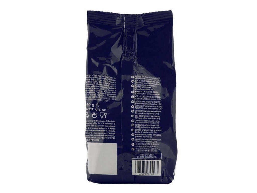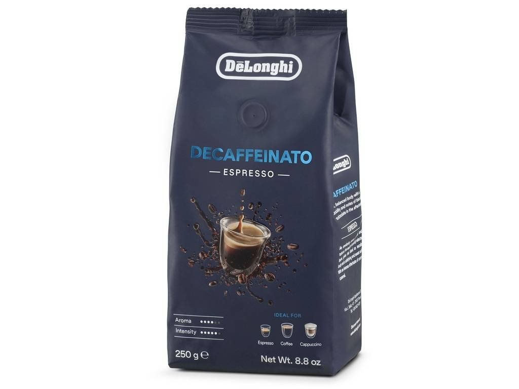 De'Longhi Decaffeinato je chutná zmes kávových zŕn 50 % Arabica a 50 % Robusta, ktorá sa zbavuje kofeínu prirodzeným procesom pomocou CO2. Obklopujúca aróma kakaa a tabaku, výsledok starostlivo vybraných bôbov, dáva tejto zmesi vynikajúce telo a uspokojujúcu sladkú kyslosť. S intenzívnou dochuťou kakaa a karamelu.Starostlivo vybrané na prípravu dokonalej kávy, espressa alebo cappuccina.