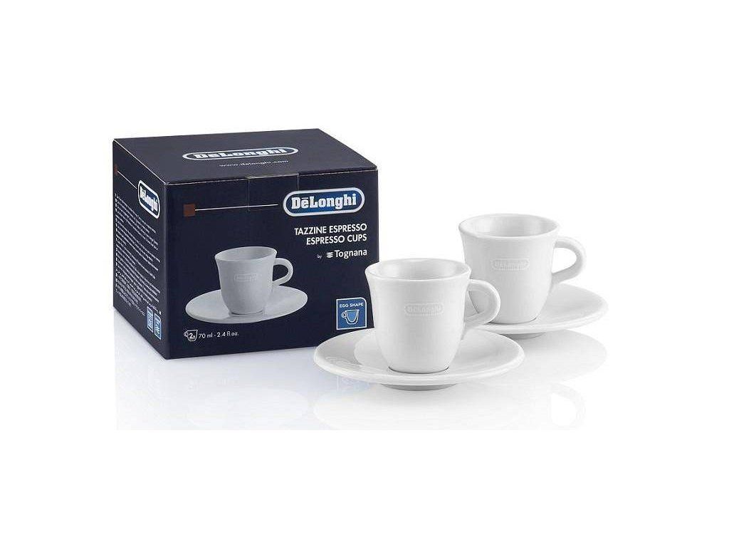 De'Longhi DLSC308 obsahuje sadu 2 porcelánových šálok na Espresso s podšálkami. Dizajn De'Longhi vyrába spoločnosť Tognana. Šálka má guľaté dno pre zachovanie dokonalej cremy espresso. Vyrobené z bieleho porcelánu.- Ručne vyrobený z bieleho porcelánu