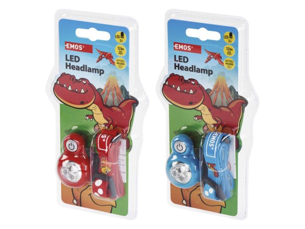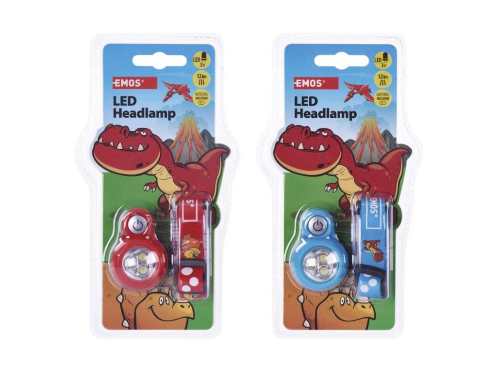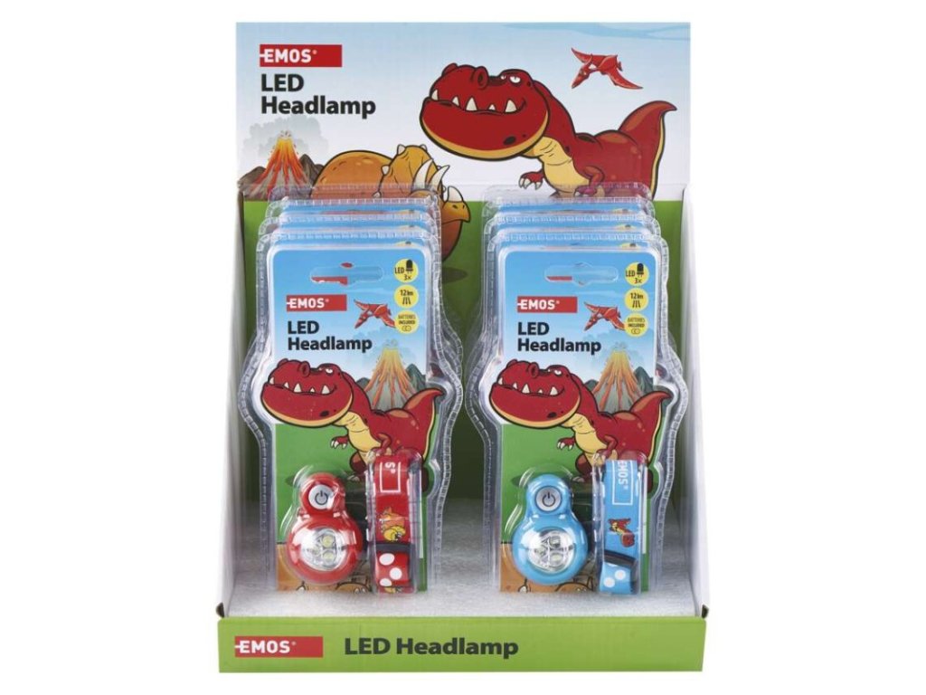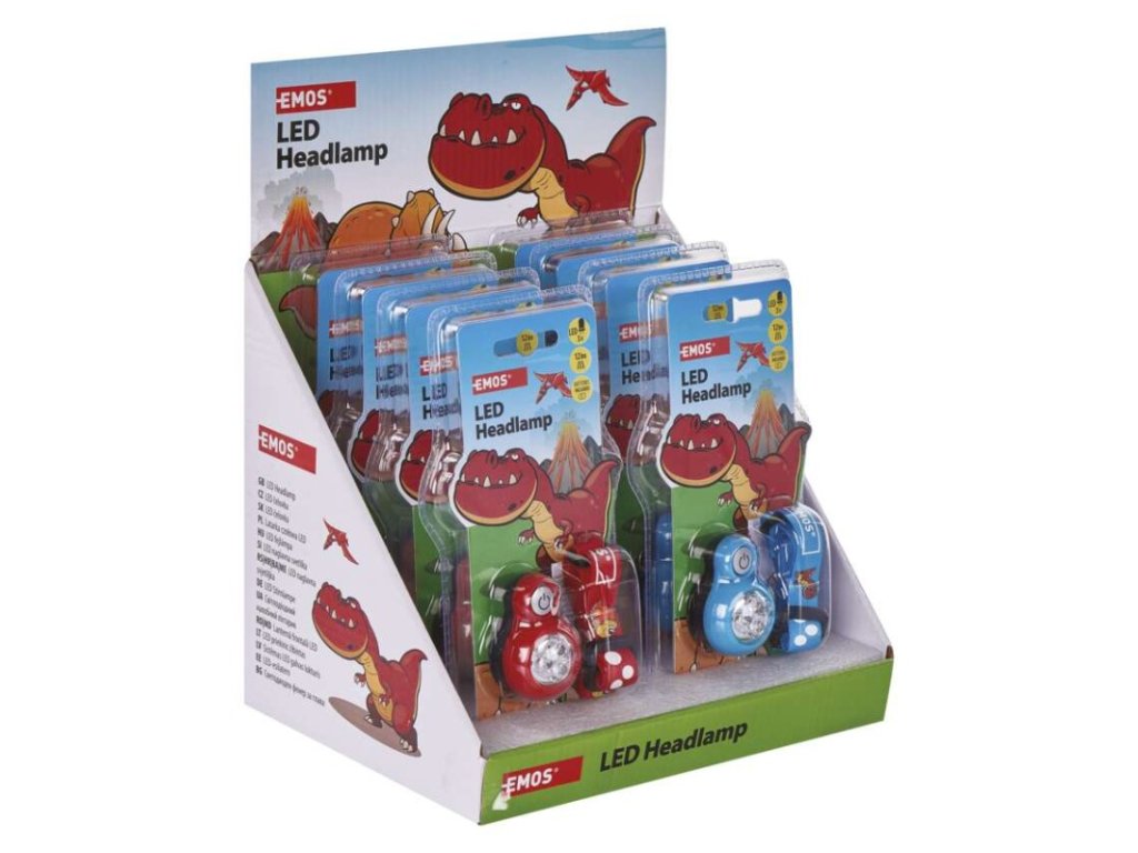 Detská LED čelovka Dino, 2× CR2032, 8 ks, display box