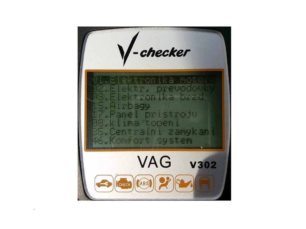 Ručný skener profi V302 V-checker je plne profesionálny diagnostický prístroj určený na diagnostiku vozidiel koncernu VW (Škoda, Audi, Volkswagen, Seat). Menu v českom jazyku spolu s nie prehnanou cenou z neho robia veľmi kompaktného pomocníka do vášho vozidla. Tento produkt podporuje všetkých 78 jednotiek vozidla, takže ide o kompletnú diagnostiku. Zoznam jednotiek a ich označenie nájdete nižšie.