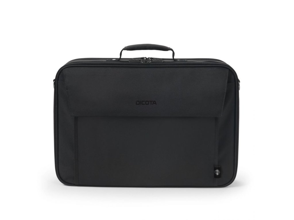 Lehké pouzdro na notebook s ochranným polstrováním a úložištěm dokumentů. Kompaktní pouzdro Eco Multi Plus BASE s extra úložným prostorem na dokumenty nabízí díky polstrované přihrádce na notebook ideální ochranu vašeho notebooku. Pouzdro plně chrání zařízení mezi 14 a 15,6'' a elastický popruh je také zajišťuje v jejich přihrádce. Eco Multi Plus BASE zaručuje díky kovovému rámu mimořádnou stabilitu a ochranu a díky své lehké konstrukci také flexibilní mobilitu. Uložte vaše dokumenty ve vyhrazené přední přihrádce na zip. Váš smartphone nebo jiné menší předměty, jako jsou kabely, pera nebo nabíječky, lze uložit do praktické přední kapsy, takže jsou vždy po ruce. Úchyty pouzdra usnadňují nošení a lze jej připevnit do kufru díky integrovanému popruhu. Lze jej také nosit pomocí nastavitelného ramenního popruhu. Vlastnosti *Vyrobeno z 11 recyklovaných PET lahví *Polstrovaná přihrádka na notebook *Kovový rám pro větší ochranu *Vysoce kvalitní kovové prvky *Přihrádka na dokumenty se zipem *Bezpečnostní pásek na notebook *Zadní přihrádka na dokumenty *Přední kapsa s úložným prostorem pro mobilní příslušenství *Pohodlná polstrovaná rukojeť *Odnímatelný, nastavitelný ramenní popruh Technické parametry *Barva: Černá *Materiál: 300D rPET polyester *Max. rozměry zařízení: 385 x 40 x 265 mm *Rozměry produktu: 410 x 90 x 295 mm *Hmotnost: 0,88 kgDodatočné parametre