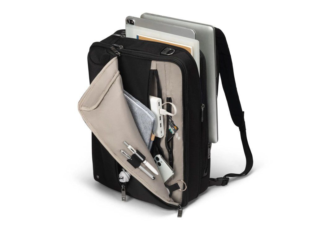 DICOTA Top Traveller Dual FIVE 14-16 *Sklopné, polstrované ramenní popruhy, nastavitelné na délku (funkce batohu) *DICOTA Cushion Technology (DCT) integrovaná pro perfektní ochranu a přizpůsobení vašeho notebooku *Uzamykatelná přihrádka na notebook s HDF a EVA polstrováním *Přihrádka na tablet pro zařízení až do 12.9'' *Popruh na vozík pro snadný transport *Polstrovaná rukojeť pro pohodlí -Kompatibilní velikost obrazovky (Min–Max) 14.0 – 16.0 palců -Maximální velikost zařízení (šířka × výška × délka) 30.0 × 265.0 × 385.0 mm -Rozměry produktu 440.0 × 185.0 × 315.0 mm -Materiál 900D recyklovaný PET polyester -Hmotnost 1.27 kgDodatočné parametre