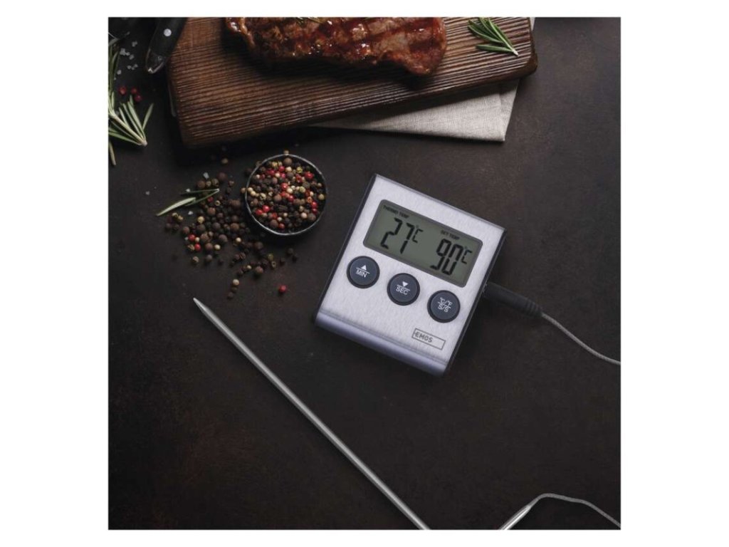 Digitálny grilovací teplomer s minútkou, drôtový snímač E2157