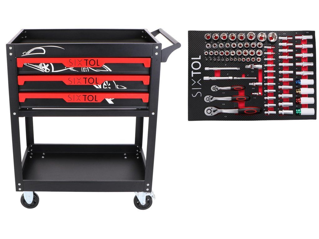 Dílenský vozík s nářadím MECHANIC TROLLEY JASON 80, 3 šuplíky, 1 police, 80 ks nářadí SIXTOL