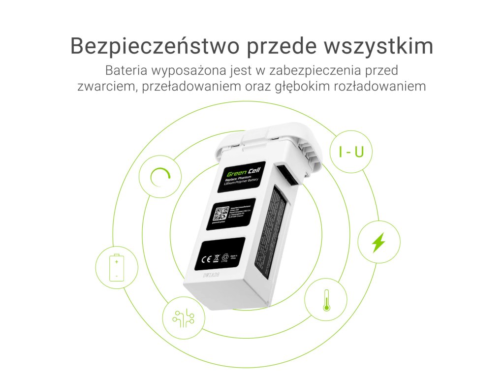 Kapacita: 5200 mAh; napätie: 11,1 V; Cell Technológia: Li-Polymer (vysoký výkon); záruka: 12 mesiacov; bunky Výrobca: zelená bunka; farba: šedá; Ochrana proti nadmernému výbuchu: ÁNO; : Až 30 dní; Kód produktu: DJI06; Výrobca: Zelená bunka; Veľkosť: 130 x 45 x 78 mm; Hmotnosť: 330g; typ batérie: inteligentná letová batéria; približná doba letu: 25 minút; ďalšie vlastnosti :: 4 LED diódy označujúce stav nabíjania; vrátane: batéria, užívateľská príručka; inteligentný systém správy nabíjania: Áno; Short Circuit Ochrana: ÁnoDodatočné parametre