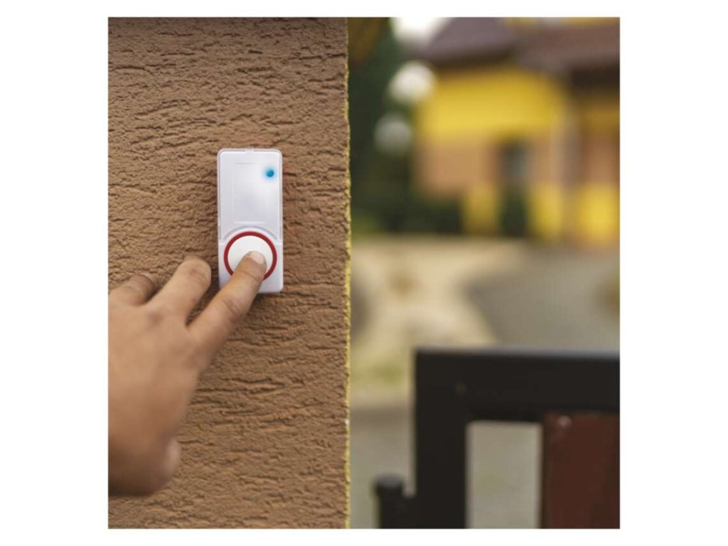 dosah tlačidla: 150 m|farba: červená|maximálna hlasitosť zvonenia: 110 dB|možnosť pridať ďalšie tlačidlo: áno, max. 8|napájanie hlavnej jednotky: 230 V AC|napájanie tlačidla: bez napájania|optická signalizácia na tlačidle: áno|optická signalizácia na zvončeku: áno|počet melódií: 10|počet prijímačov v balení: 1 ks|počet tlačidiel v balení: 2 ks|predajný obal: 1 ks, blister|prenosová frekvencia: 433 MHz|prídavné (náhradné) tlačidlo: P5750T|regulácia hlasitosti: áno, 5 úrovní|rozmer tlačidla: 24 × 90 × 40 mm|rozmer zvončeka: 66 × 57 × 107 mm|špeciálne funkcie: bezbatériové tlačítko|spôsob párovania: automatické párovanie – self-learning|spôsob prenosu: bezdrôtový zvonček|vodeodolné tlačidlo: IP44Dodatočné parametre
