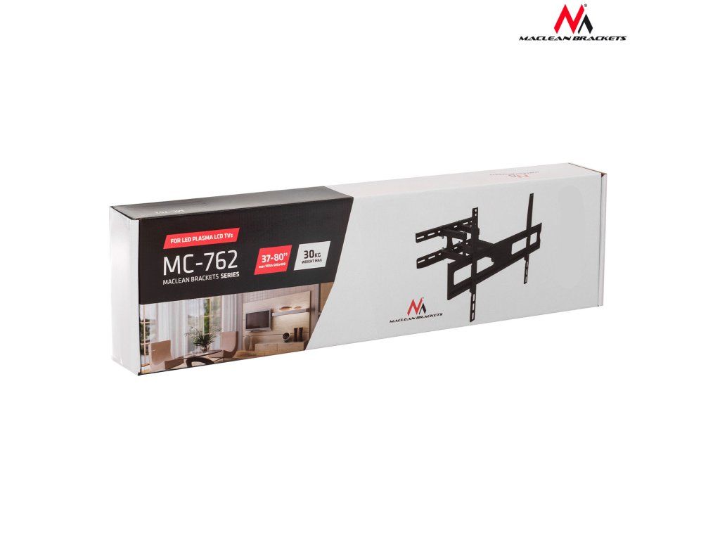 Držiak Maclean na TV alebo monitor, univerzálny, max. VESA 600x400, 37-70", 30 kg, čierny, MC-762